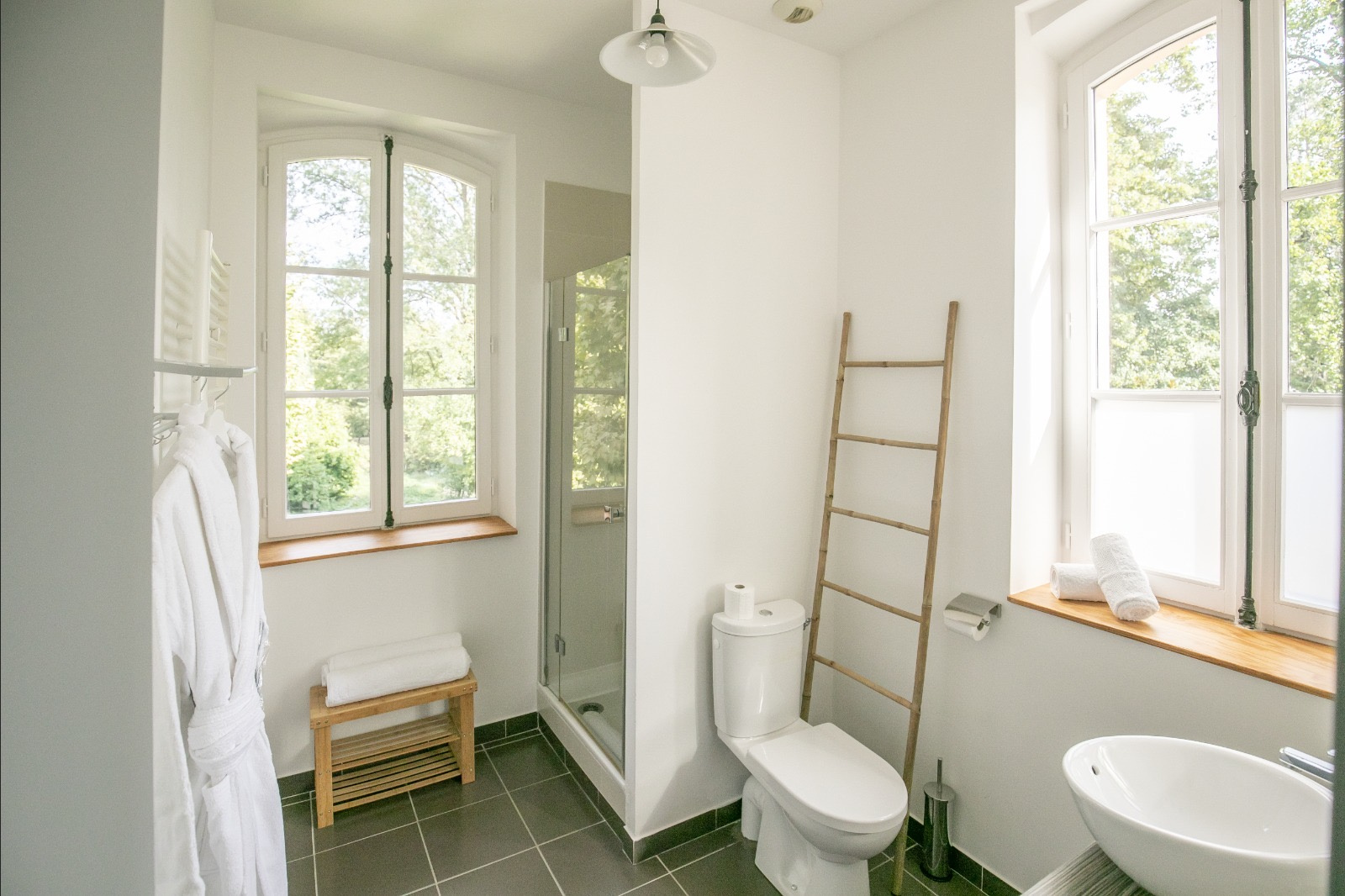- Deux grandes terrasses avec une vue dégagée sur un parc arboré.