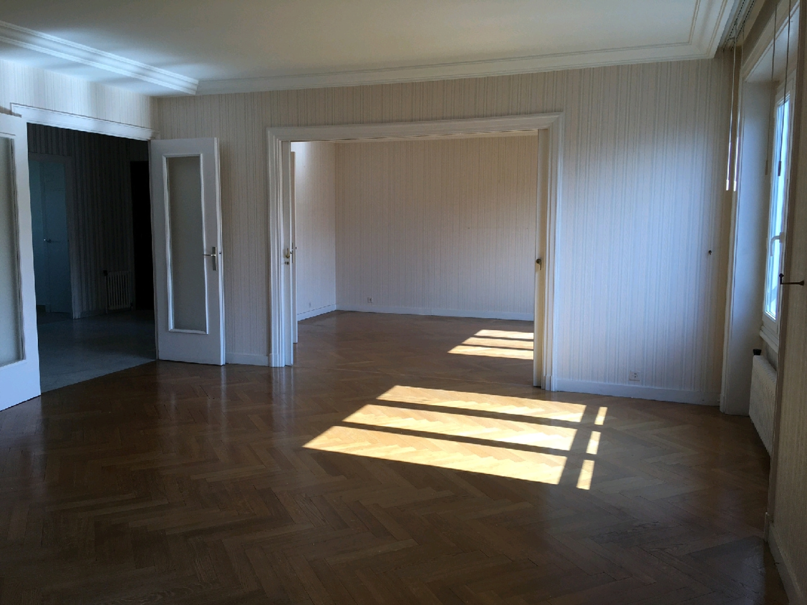 VENDU ! Exclusivité: A deux pas de la Manufacture des tabacs(Lyon 3) , dans bel immeuble avec ascenseur, T4 de 108 m² traversant N/S. Vaste hall d' entrée ouvrant sur le séjour de 30m² en parquet chêne, cuisine, trois chambres de belles tailles, une salle de bains. Appartement dans immeuble confortable, beaux volumes, lumineux et traversant. Huisseries récentes. Garage et cave A VOIR