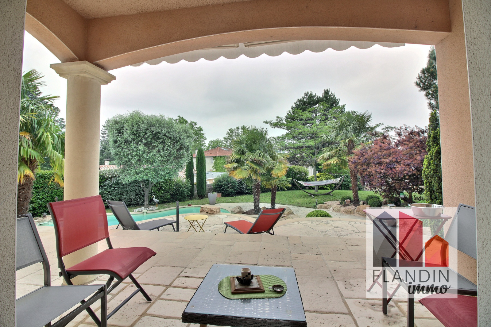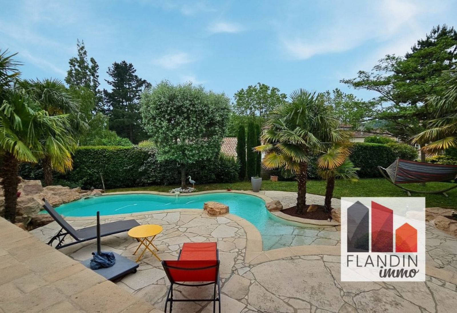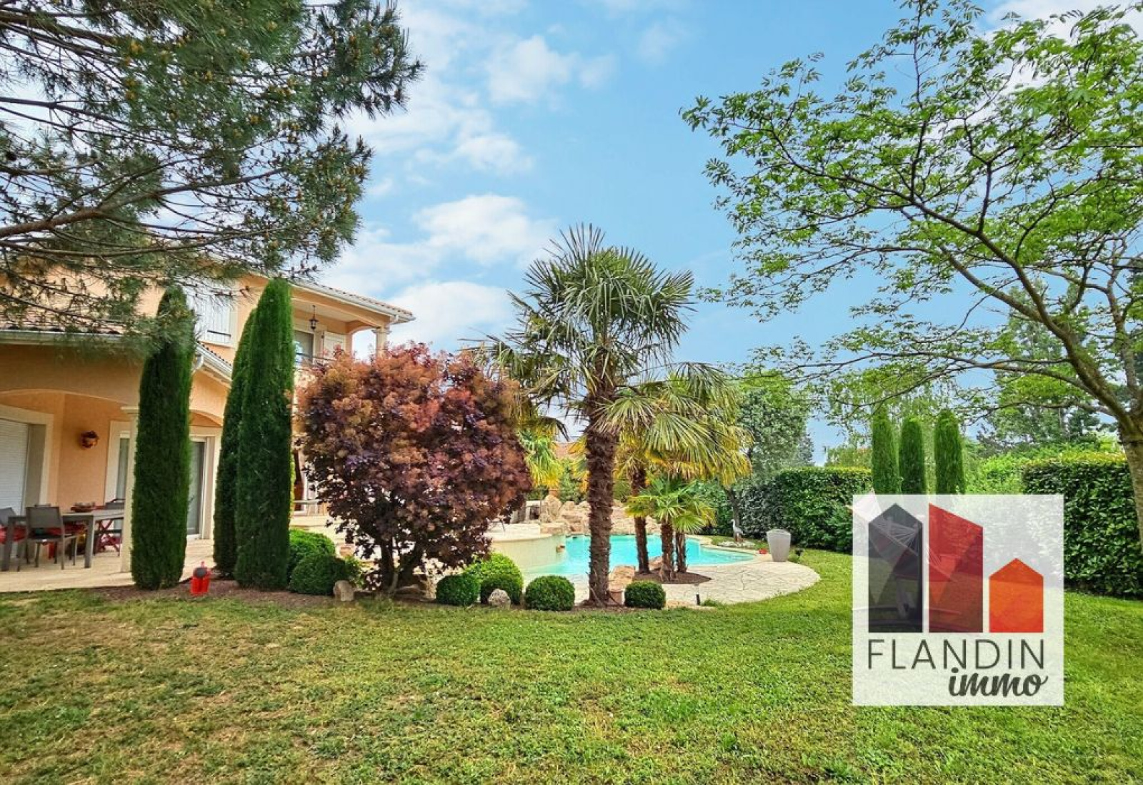 La maison est disposée sur une parcelle de 1234 m2, sans vis-à-vis et dans un écrin de verdure, le tout à proximité du centre village. Piscine au sel, terrain arboré et cloturé.