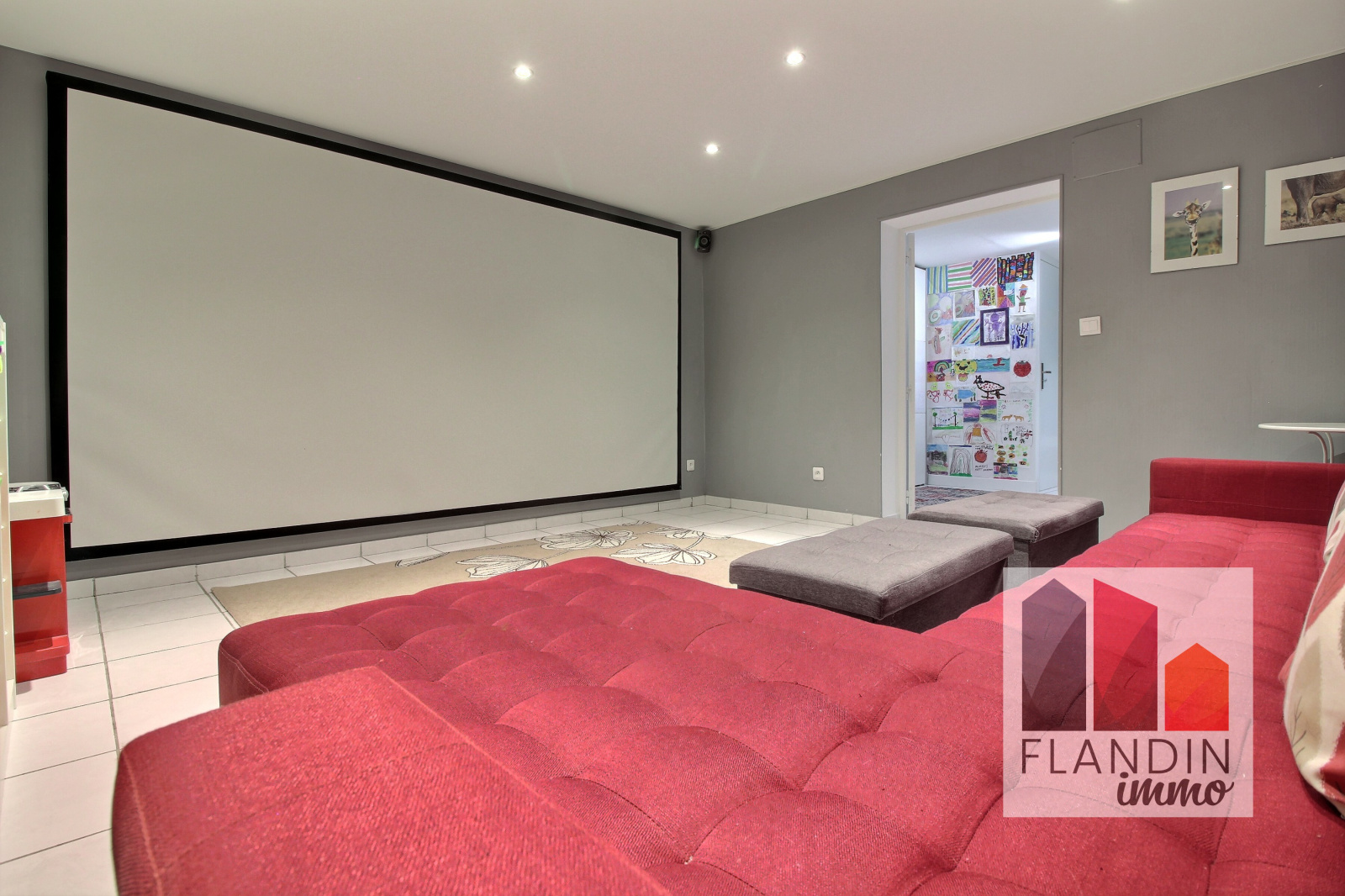 Au sous-sol, vous trouverez un grand bureau, une buanderie ainsi qu'un salon dédié à la projection de films. Un très grand garage de 57 m² pourra accueillir deux véhicules et du stockage.