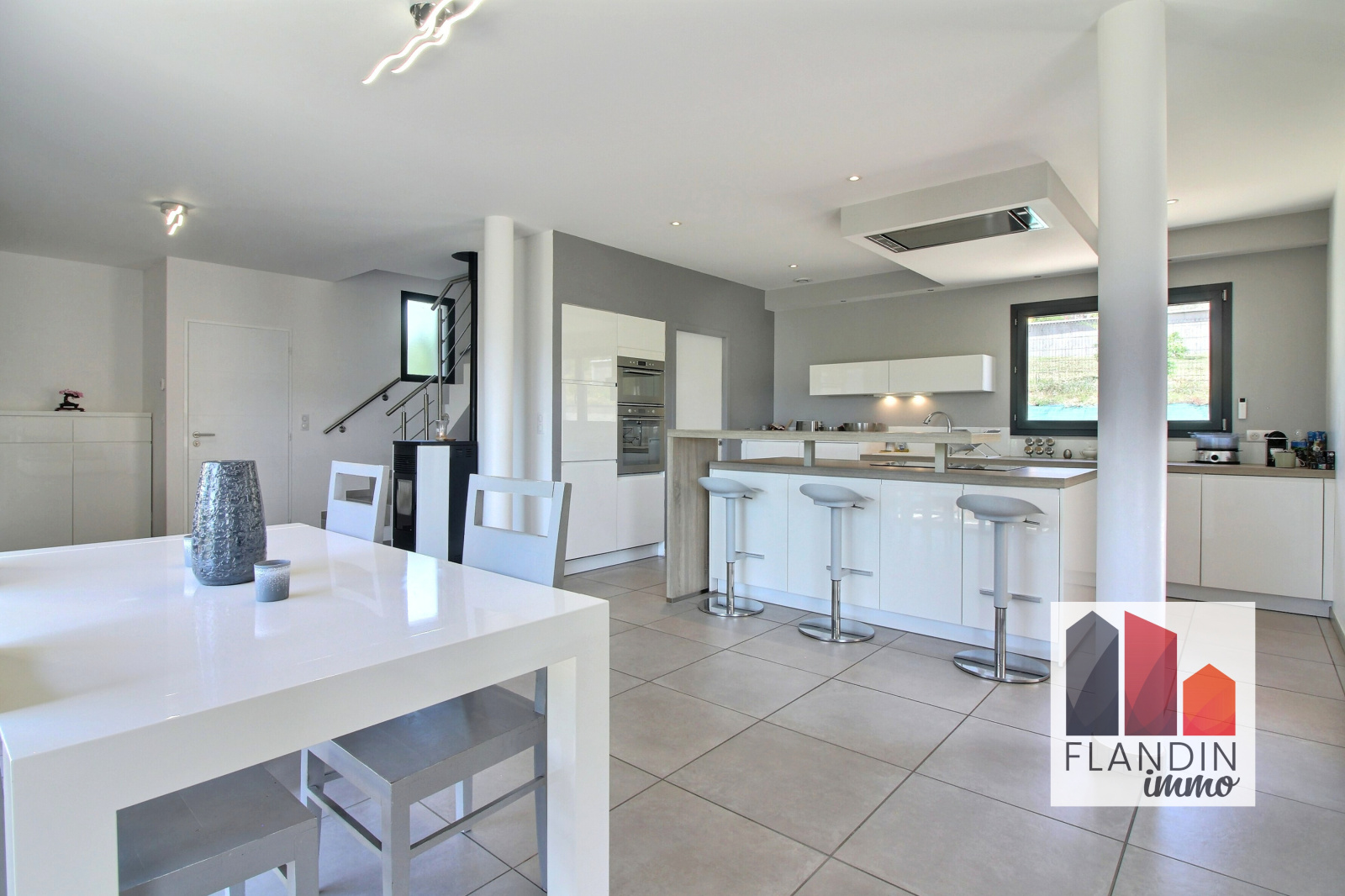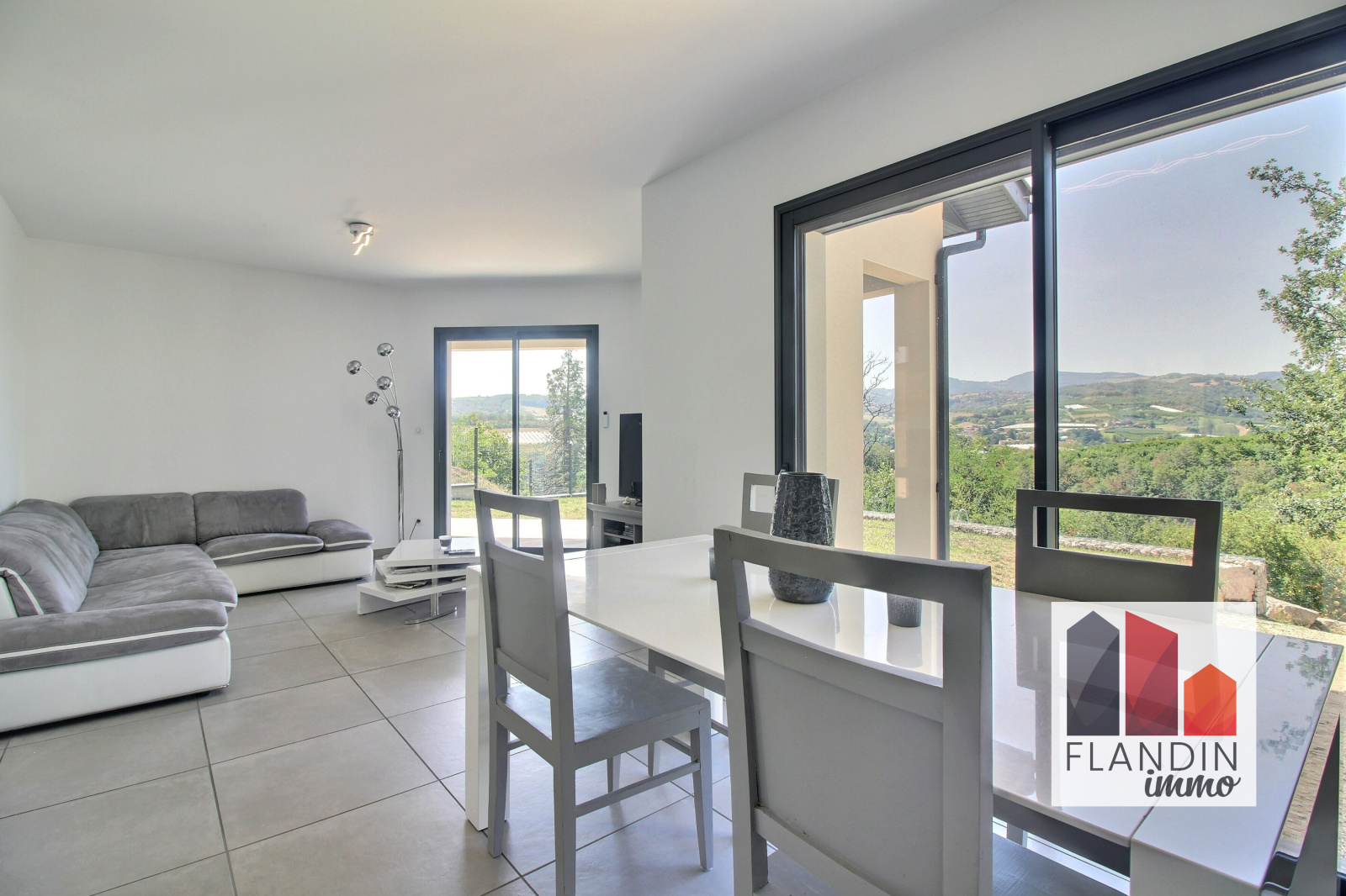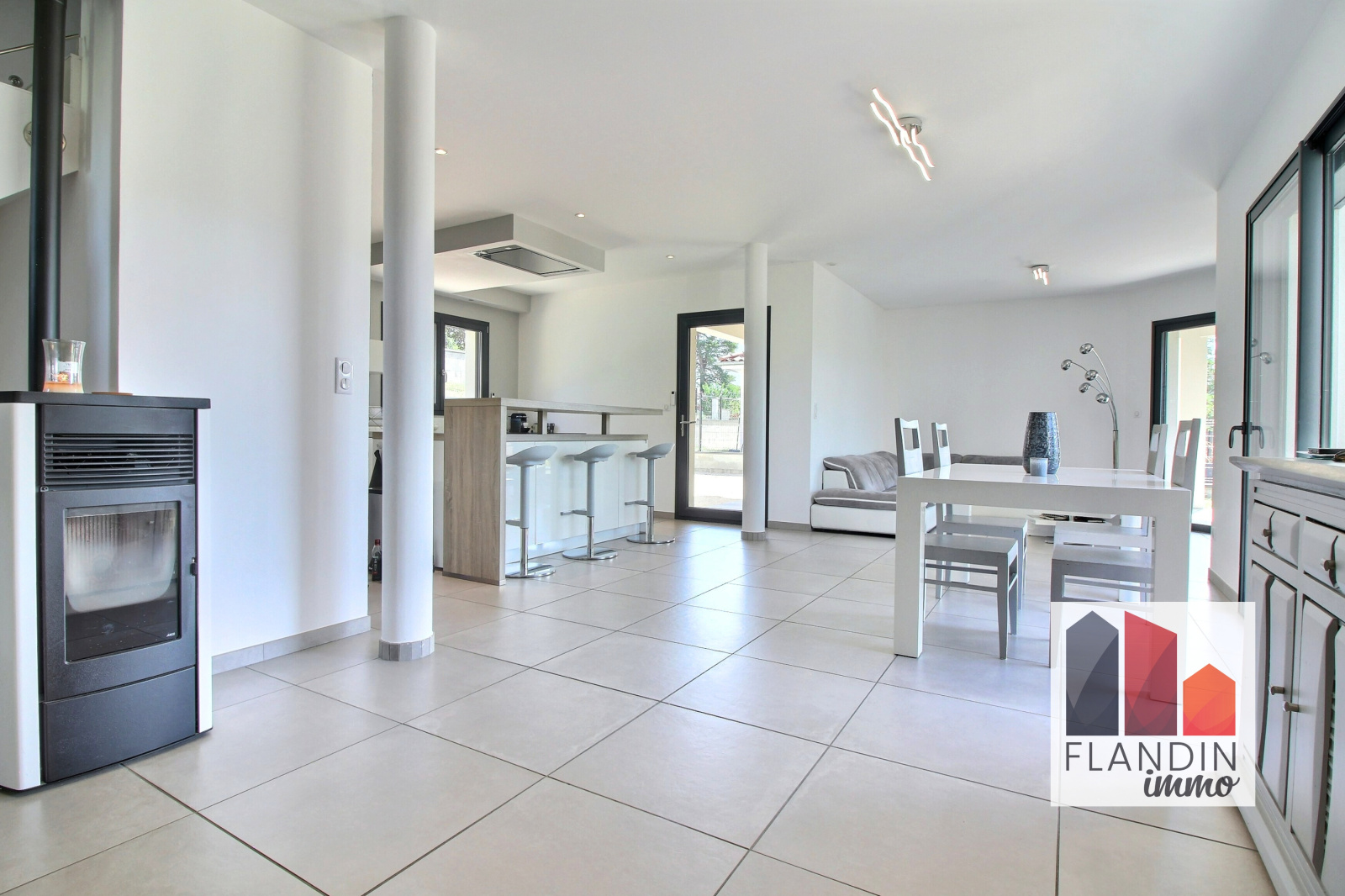 Sur la commune de THURINS, venez découvrir cette maison moderne de 134 m² sur une parcelle de 900 m², dans un environnement paisible avec vue sur les vergers.Au rez-de-chaussée :L’entrée donne sur un espace de vie salon / séjour de 42m² orienté sud-est baigné de lumière et ouvert sur la terrasse.La cuisine américaine est entièrement équipée, elle a été dessinée autour d’un grand îlot central qui offre une multitude de rangements. Elle bénéficie également d’un accès direct à la buanderie permettant du stockage supplémentaire, ainsi qu’à une deuxième terrasse couverte.La grande suite parentale avec dressing et salle d’eau profite d’un balcon privatif.Un WC séparé complète ce niveau.Au premier étage : Le dégagement dessert trois chambres, une salle de bain et un WC séparé.Au sous-sol :La maison dispose d’un garage double avec porte électrique, et d’un espace « cave à vin »Les plus de cette maison : Tout le confort d’une maison moderne :- Chauffage au sol au rez-de-chaussée, poêle à granulés- Cumulus thermodynamique- Huisseries double vitrage pvc / alu avec volets roulants, vmc double flux- Maison sous garantie décennale (construction 2015)- Très lumineuseVous pouvez visionner la vidéo de cette maison en copiant ce lien sur votre navigateur : https://bit.ly/3rnMgpvLes informations sur les risques auxquels ce bien est exposé sont disponibles sur le site Géorisques : www.georisques.gouv.fr.Pour plus d’informations ou pour prévoir une visite, contactez l’agence Immobilier FLANDIN au 04.28.87.02.00