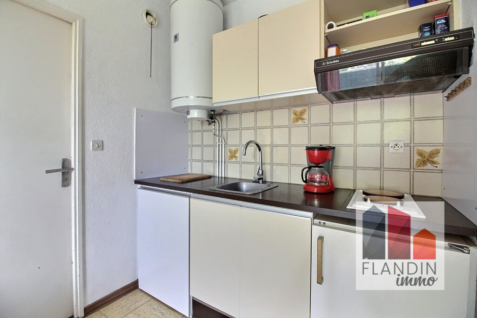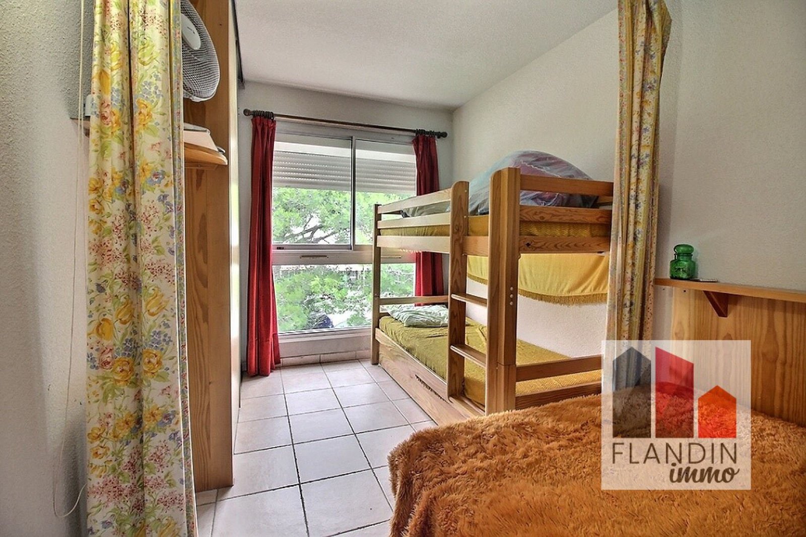 Au 3e étage sur 4, le couloir d'entrée dessert un espace cuisine semi-équipée / séjour donnant sur un balcon avec vue sur les pins. La chambre dispose d'un grand placard et peut accueillir un lit double et un lit superposé, elle donne accès à la salle d'eau.
